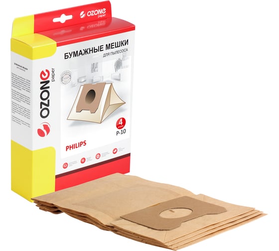 Фильтр-мешки OZONE P-10 для пылесоса PHILIPS, 4 шт.