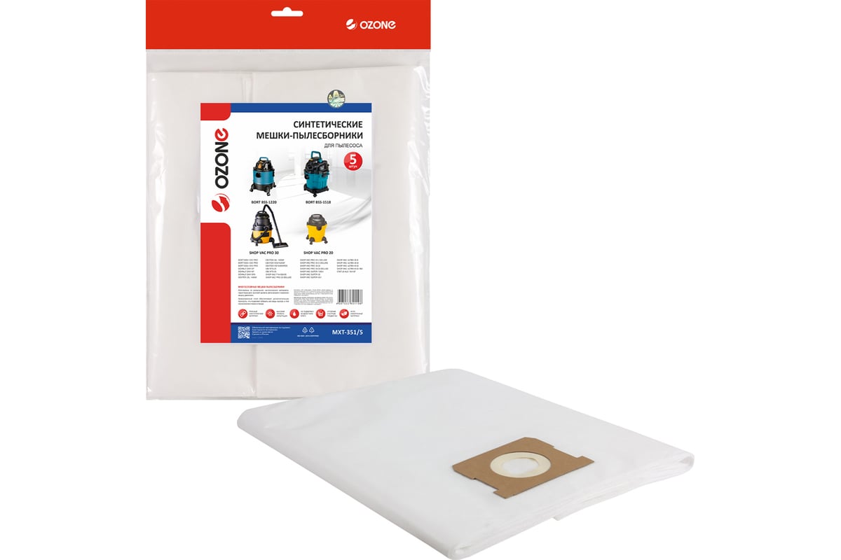 Мешки-пылесборники синтетические для пылесоса OZONE MXT-351/5 не боятся мокрой пыли.