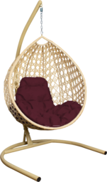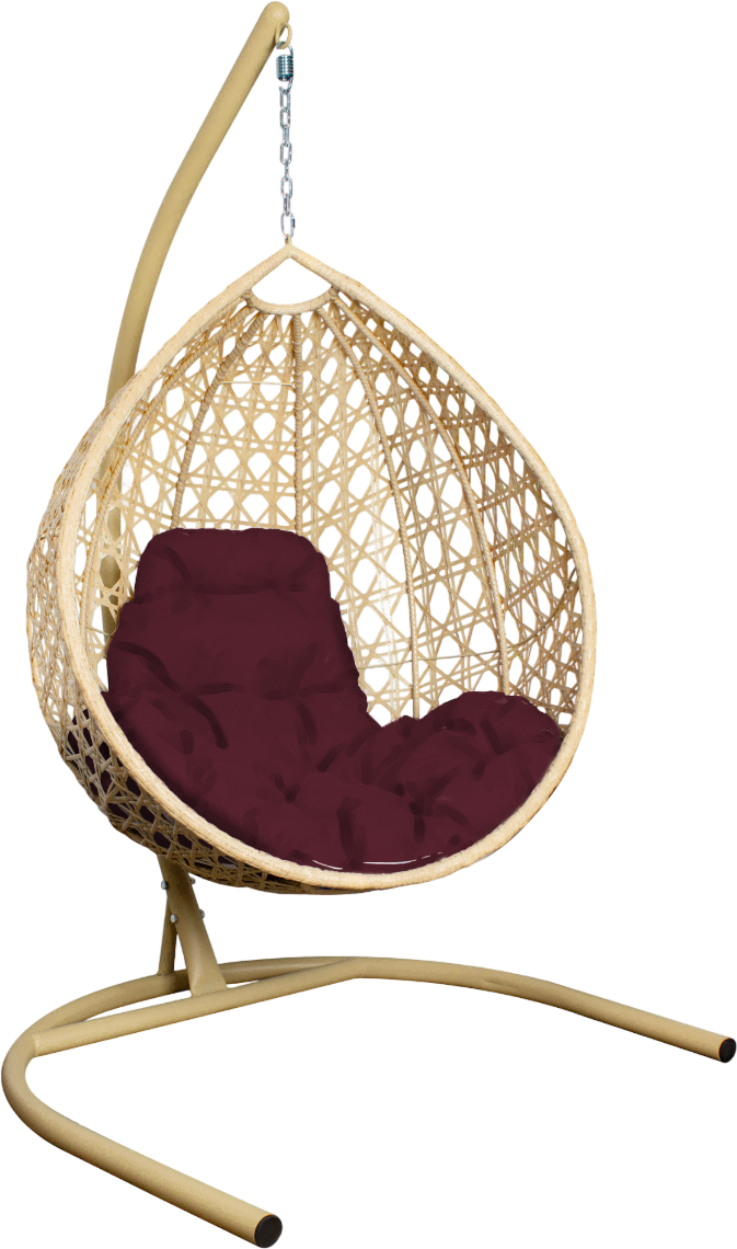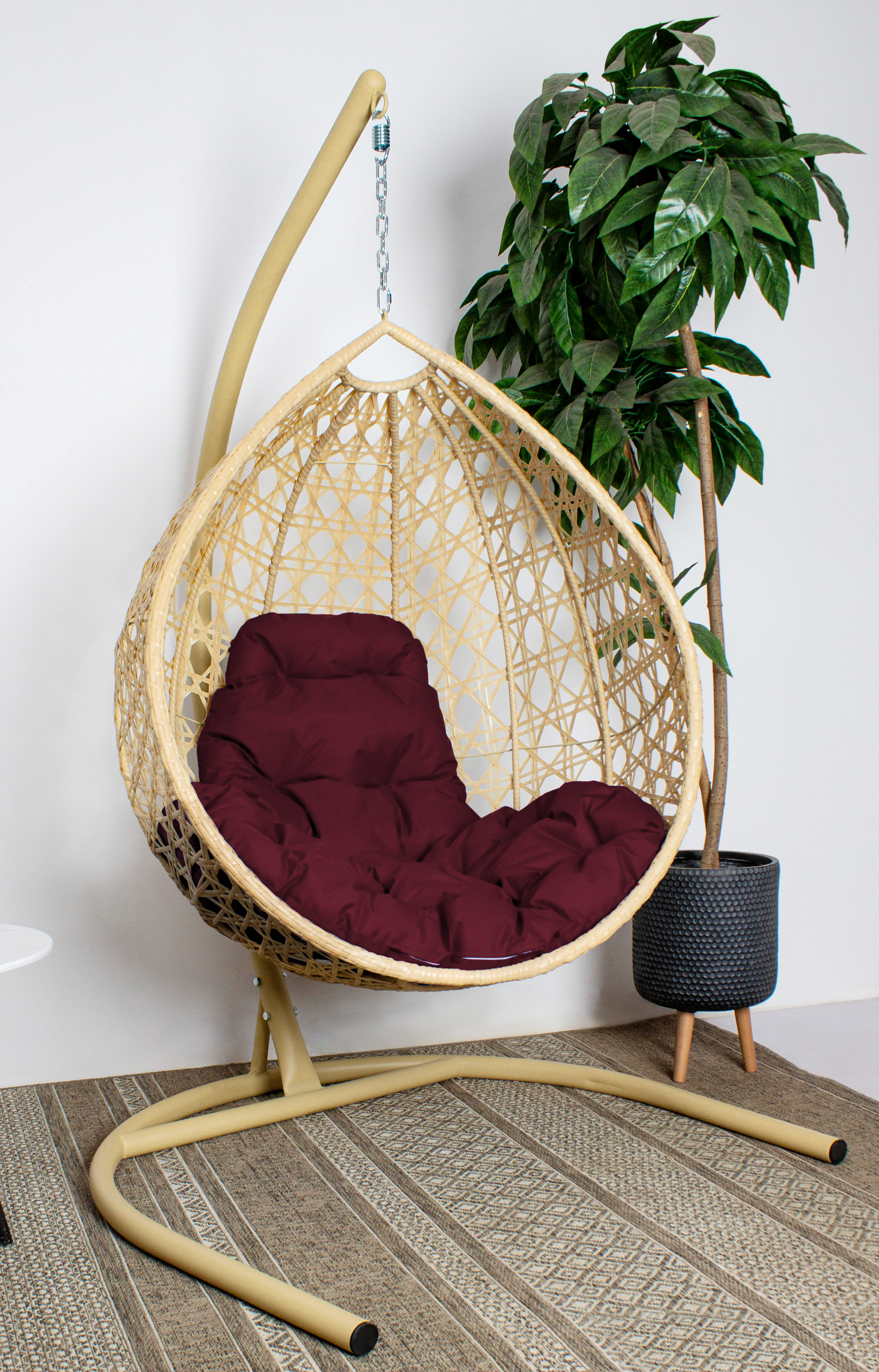 Кресло подвесное M-Group Капля Люкс / 11030502 (бежевый ротанг/бордовая подушка)