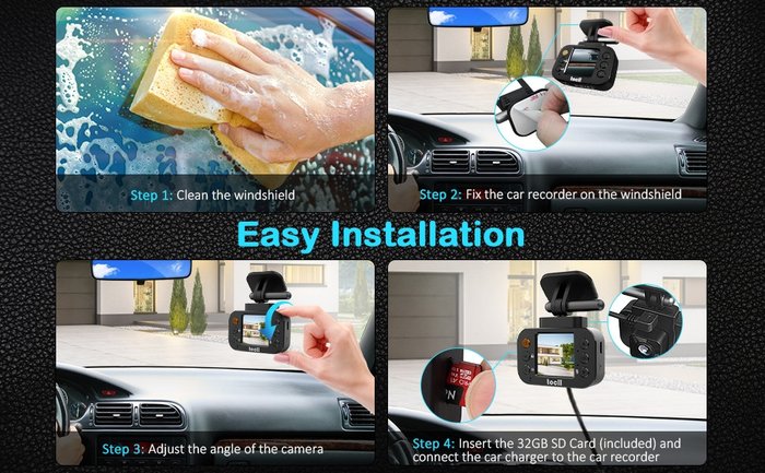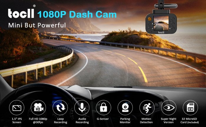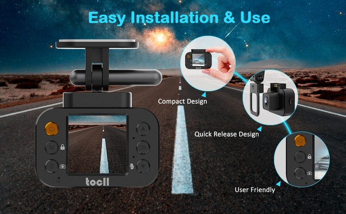 Комплектация- видеорегистратор TOCLL- магнитный кронштейн для лобового стекла- автомобильное зарядное устройство (3,6 м)- Руководство пользователя