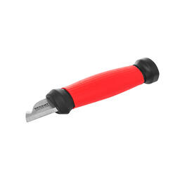 Нож монтажника, нержавеющая сталь, двухсторонняя заточка, лезвие.Предназначается для удаления изоляции с многожильного кабеля и прочих работ. Инструмент обеспечивает высокое качество и надежность снятия оболочки без риска повреждения жильной изоляции. Удобная противоскользящая рукоятка обеспечивает комфорт и повышенную безопасность в работе.• Усиленное лезвие толщиной 2 мм со специальной двухсторонней заточкой для работы с толстыми материалами.• Мощная эргономичная рукоятка, выполненная из мягкого пластика, обеспечивает дополнительное удобство в работе.• Прецизионная заточка обеспечивает чистоту и точность реза.• Лезвие изготовлено из нержавеющей стали.• Пластиковые ножны для удобного хранения и транспортировки.Характеристики: Длина лезвия: 33 мм Толщина лезвия: 2 ммОбщая длина ножа: 155 мм