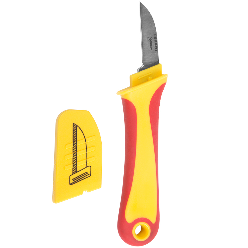 Нож монтажника, нержавеющая сталь, прямое лезвие, REXANT.Предназначается для удаления изоляции с многожильного кабеля и прочих работ. Инструмент обеспечивает высокое качество и надежность снятия оболочки без риска повреждения жильной изоляции. Удобная противоскользящая рукоятка обеспечивает комфорт и повышенную безопасность в работе.• Усиленное лезвие со специальной заточкой для работы с толстыми материалами.• Мощная эргономичная рукоятка, выполненная из мягкого пластика, обеспечивает дополнительное удобство в работе.• Прецизионная заточка обеспечивает чистоту и точность реза.• Лезвие изготовлено из нержавеющей стали.• Пластиковые ножны для удобного хранения и транспортировки.Характеристики: Длина лезвия: 55 мм Толщина лезвия: 2,5 ммОбщая длина ножа: 180 мм