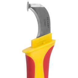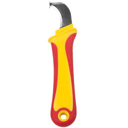 Нож монтажника предназначен для удаления изоляции с многожильного кабеля и прочих работ. Наличие пластины на кончике лезвия обеспечивает наиболее безопасное снятие оболочки с многожильных кабелей без повреждения жильной изоляции.Инструмент обеспечивает высокое качество и надежность снятия оболочки без риска повреждения жильной изоляции. Удобная противоскользяшая рукоятка обеспечивает комфорт и повышенную безопасность в работе.• Усиленное лезвие толщиной 2,5 мм со специальной прецизионной заточкой для работы с толстыми материалами.• Мощная эргономичная рукоятка, выполненная из мягкого пластика, обеспечивает дополнительное удобство в работе.• Прецизионная заточка обеспечивает чистоту и точность реза.• Лезвие изготовлено из нержавеющей стали.• Пластиковые ножны для удобного хранения и транспортировки.Характеристики: Длина лезвия: 45 мм Толщина лезвия: 2,5 ммОбщая длина ножа: 180 мм
