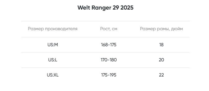 ❗️Текст описания составлен при помощи искусственного интеллекта.✅ Велосипед Welt Ranger 1.0 29 M 2025 — это идеальный выбор для любителей кросс-кантри, который сочетает в себе надежность и высокую производительность. С его алюминиевой рамой из сплава 6061, вы получите легкость и прочность, что делает его отличным вариантом для длительных поездок по пересеченной местности.✅ Оснащенный амортизационной вилкой с ходом 100 мм, этот горный велосипед обеспечивает отличную управляемость и комфорт на неровных трассах. Блокировка вилки позволяет адаптировать велосипед под различные условия, что особенно важно для активных райдеров.✅ С трансмиссией Shimano Cues и 9 скоростями, вы сможете легко переключаться между передачами, что делает поездки более плавными и эффективными. Задний переключатель Shimano RD-U3020 и манетки SL-U4010 обеспечивают точность и надежность в работе.✅ Велосипед также оборудован дисковыми гидравлическими тормозами Shimano, которые гарантируют отличное торможение в любых условиях. Диаметр тормозных дисков в 160 мм обеспечивает надежную остановку даже на крутых спусках.✅ Размер рамы M подходит для велосипедистов ростом от 168 до 175 см, что делает этот велосипед универсальным выбором для многих. С колесами диаметром 29 дюймов, вы получите отличную проходимость и стабильность на любых маршрутах.⚠️ Не забудьте, что большинство велосипедов поставляется в не настроенном виде. Перед использованием обязательно проверьте все настройки и убедитесь, что велосипед готов к поездке. Велосипед Welt Ranger 1.0 29 M 2025 — это ваш надежный спутник в мире горных приключений!❗️Текст описания составлен при помощи искусственного интеллекта.✅ Велосипед Welt Ranger 1.0 29 M 2025 — это идеальный выбор для любителей кросс-кантри, который сочетает в себе надежность и высокую производительность. С его алюминиевой рамой из сплава 6061, вы получите легкость и прочность, что делает его отличным вариантом для длительных поездок по пересеченной местности.✅ Оснащенный амортизационной вилкой с ходом 100 мм, этот горный велосипед обеспечивает отличную управляемость и комфорт на неровных трассах. Блокировка вилки позволяет адаптировать велосипед под различные условия, что особенно важно для активных райдеров.✅ С трансмиссией Shimano Cues и 9 скоростями, вы сможете легко переключаться между передачами, что делает поездки более плавными и эффективными. Задний переключатель Shimano RD-U3020 и манетки SL-U4010 обеспечивают точность и надежность в работе.✅ Велосипед также оборудован дисковыми гидравлическими тормозами Shimano, которые гарантируют отличное торможение в любых условиях. Диаметр тормозных дисков в 160 мм обеспечивает надежную остановку даже на крутых спусках.✅ Размер рамы M подходит для велосипедистов ростом от 168 до 175 см, что делает этот велосипед универсальным выбором для многих. С колесами диаметром 29 дюймов, вы получите отличную проходимость и стабильность на любых маршрутах.⚠️ Не забудьте, что большинство велосипедов поставляется в не настроенном виде. Перед использованием обязательно проверьте все настройки и убедитесь, что велосипед готов к поездке. Велосипед Welt Ranger 1.0 29 M 2025 — это ваш надежный спутник в мире горных приключений!