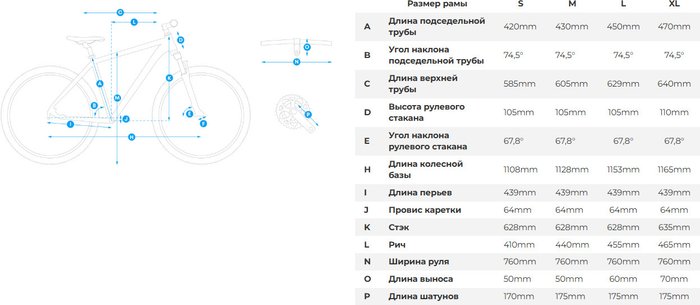 Характеристики рамыALU 6061, Hydroformed, Double butted tubes, Internal cables routing, Tapered head tube, Semi-Integrated head set, BSA, PM assymetric dropauts, Smooth welding, Progressive geometry