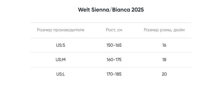 ✅ Велосипед Welt Sienna 1.0 MD M 2025 — это идеальный выбор для женщин, которые ценят комфорт и стиль. С колесами диаметром 27 дюймов, он отлично подходит как для фитнес-катания, так и для поездок по пересеченной местности. Эстетика рамы впечатляет: швы рулевого стакана практически незаметны, а внутренняя проводка тросов защищает их от повреждений.✅ Модель Sienna 1.0 MD оснащена 7-скоростной трансмиссией Shimano Tourney, что обеспечивает плавное переключение передач. Дисковые механические тормоза и втулки с промышленными подшипниками гарантируют легкий ход и отличное сцепление с дорогой. Кассета вместо трещотки предлагает больший диапазон скоростей и долговечность, что делает поездки более комфортными.✅ Амортизационная вилка с блокировкой хода позволяет легко преодолевать подъемы, а специальное покрытие ног вилки снижает трение и увеличивает срок службы. Крепление тормоза внутри заднего треугольника не мешает установке багажника, что добавляет функциональности.✅ Утонченный небесный цвет придает велосипеду женственность и элегантность. Sienna станет верным спутником для девушек, даря радость и незабываемые впечатления от каждой велопоездки! ⚠️ Не упустите возможность сделать свой выбор в пользу качества и стиля!✅ Велосипед Welt Sienna 1.0 MD M 2025 — это идеальный выбор для женщин, которые ценят комфорт и стиль. С колесами диаметром 27 дюймов, он отлично подходит как для фитнес-катания, так и для поездок по пересеченной местности. Эстетика рамы впечатляет: швы рулевого стакана практически незаметны, а внутренняя проводка тросов защищает их от повреждений.✅ Модель Sienna 1.0 MD оснащена 7-скоростной трансмиссией Shimano Tourney, что обеспечивает плавное переключение передач. Дисковые механические тормоза и втулки с промышленными подшипниками гарантируют легкий ход и отличное сцепление с дорогой. Кассета вместо трещотки предлагает больший диапазон скоростей и долговечность, что делает поездки более комфортными.✅ Амортизационная вилка с блокировкой хода позволяет легко преодолевать подъемы, а специальное покрытие ног вилки снижает трение и увеличивает срок службы. Крепление тормоза внутри заднего треугольника не мешает установке багажника, что добавляет функциональности.✅ Утонченный небесный цвет придает велосипеду женственность и элегантность. Sienna станет верным спутником для девушек, даря радость и незабываемые впечатления от каждой велопоездки! ⚠️ Не упустите возможность сделать свой выбор в пользу качества и стиля!
