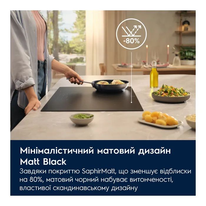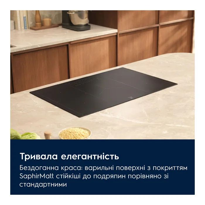 Функціїіндикатор залишкового тепла , функція автоматичного прискорення приготування , об'єднані зони , функція Booster кожної конфорки , сенсор кипіння , захист від дітей , звуковий сигнал , розпізнавання посуду
