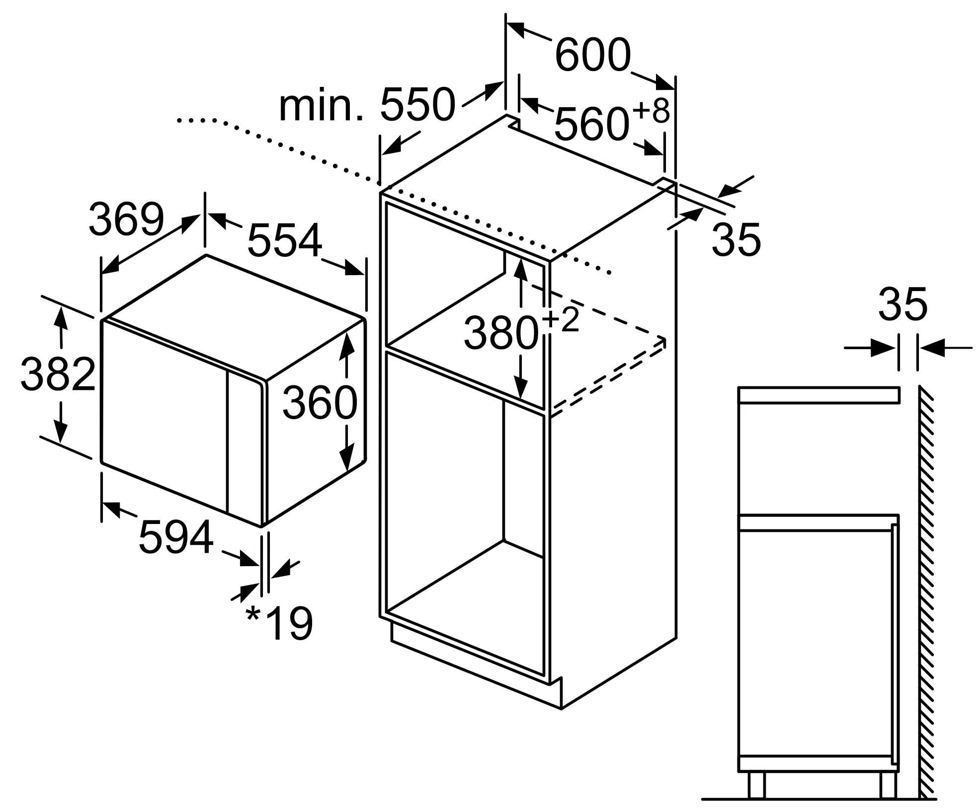 • Размеры для встраивания (ВхШхГ) 380x600x550 мм