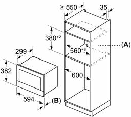 • Размеры для встраивания (ВхШхГ) 382x560x300 мм