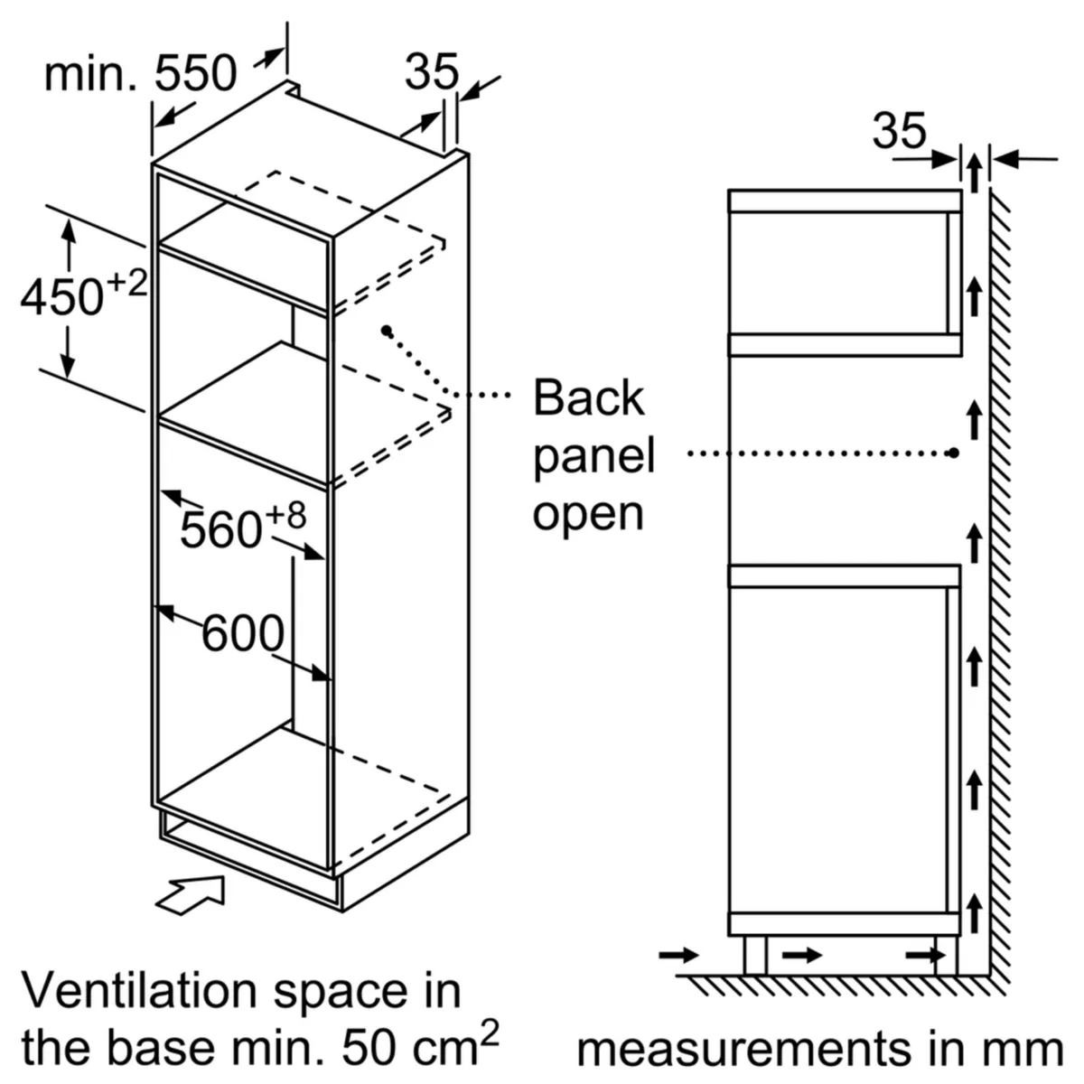 • Размеры для встраивания (ВхШхГ) 450x560x550 мм