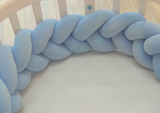Мягкий плетеный бортик в виде косички защитит малыша от ударов о бортики и сквозняков