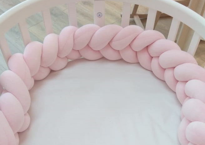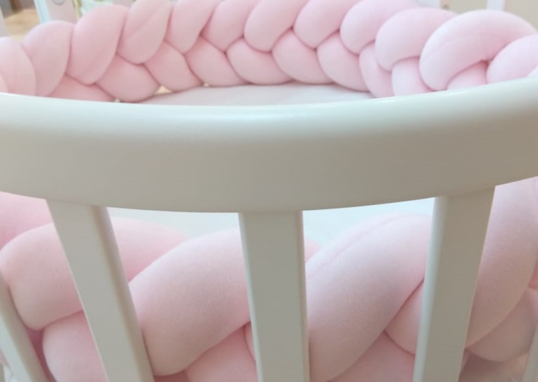 Мягкий плетеный бортик в виде косички защитит малыша от ударов о бортики и сквозняков