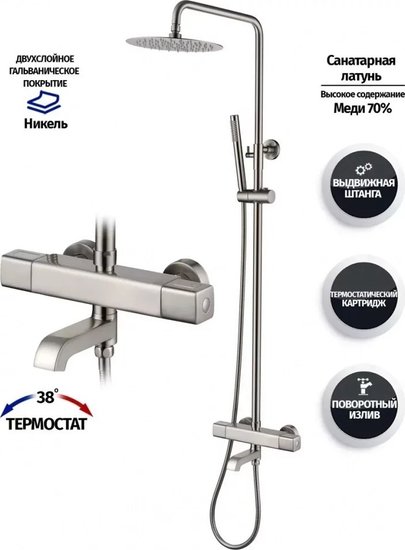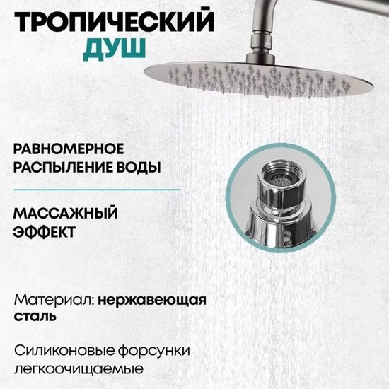• Комплектация верхний душ, штанга, ручной душ (лейка), шланг