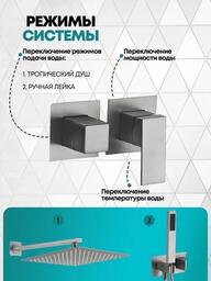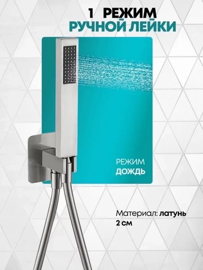 • Комплектация верхний душ, ручной душ (лейка), держатель лейки, шланг