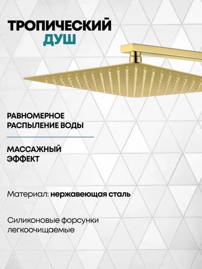 • Форма верхнего душа прямоугольная