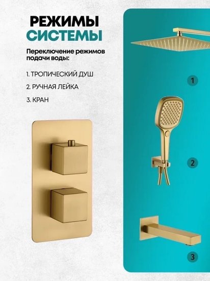 ✅ Уникальная душевая система с тропическим душем и термостатом станет настоящим украшением вашей ванной комнаты. Этот комплект включает в себя все необходимое для комфортного использования: корпус душевой системы, термостатический картридж от Vernet (Франция), ручную лейку из латуни, верхний тропический душ с несколькими режимами подачи воды и крепление для лейки. Если вы ищете смеситель для ванны с душем, этот вариант идеально подойдет для вас.✅ Система изготовлена из санитарной латуни с высоким содержанием меди, что гарантирует долговечность и надежность. Перед отправкой каждый элемент проходит контрольное тестирование, что подтверждает высокое качество продукции. Литой корпус способен выдерживать давление в три раза больше стандартного, что обеспечивает долгий срок службы без протечек.⚠️ Идеальный дизайн и эргономика делают использование душевой системы максимально комфортным. Плавный ход рычага и стильные формы добавляют эстетики в ваш интерьер.✅ В комплект входят: смеситель с термостатическим картриджем, фиксированный излив, ручная лейка с тремя режимами, шланг длиной 1,5 м, верхний тропический душ размером 30х30 см, а также все необходимые монтажные элементы. ✅ Создайте атмосферу уюта и комфорта в вашей ванной комнате с этой стильной душевой системой от Grocenberg. Наслаждайтесь расслабляющими процедурами и преобразите свое пространство!✅ Уникальная душевая система с тропическим душем и термостатом станет настоящим украшением вашей ванной комнаты. Этот комплект включает в себя все необходимое для комфортного использования: корпус душевой системы, термостатический картридж от Vernet (Франция), ручную лейку из латуни, верхний тропический душ с несколькими режимами подачи воды и крепление для лейки. Если вы ищете смеситель для ванны с душем, этот вариант идеально подойдет для вас.✅ Система изготовлена из санитарной латуни с высоким содержанием меди, что гарантирует долговечность и надежность. Перед отправкой каждый элемент проходит контрольное тестирование, что подтверждает высокое качество продукции. Литой корпус способен выдерживать давление в три раза больше стандартного, что обеспечивает долгий срок службы без протечек.⚠️ Идеальный дизайн и эргономика делают использование душевой системы максимально комфортным. Плавный ход рычага и стильные формы добавляют эстетики в ваш интерьер.✅ В комплект входят: смеситель с термостатическим картриджем, фиксированный излив, ручная лейка с тремя режимами, шланг длиной 1,5 м, верхний тропический душ размером 30х30 см, а также все необходимые монтажные элементы. ✅ Создайте атмосферу уюта и комфорта в вашей ванной комнате с этой стильной душевой системой от Grocenberg. Наслаждайтесь расслабляющими процедурами и преобразите свое пространство!
