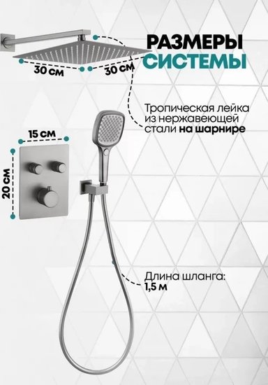 ✅ Душевая система с тропическим душем и термостатом — это идеальное решение для создания уюта и комфорта в вашей ванной комнате. Этот комплект включает в себя все необходимые элементы для установки, включая корпус душевой системы, термостатический картридж от Vernet (Франция), ручную лейку из латуни и верхний тропический душ с несколькими режимами подачи воды.✅ Если вы ищете смеситель для ванны с душем или душ со смесителем, эта модель станет отличным выбором. Уникальный дизайн и функциональность позволят вам наслаждаться расслабляющими процедурами, создавая атмосферу настоящего спа прямо у вас дома.⚠️ Сантехника «Grocenberg» изготовлена из высококачественной санитарной латуни с высоким содержанием меди, что обеспечивает долговечность и надежность. Перед отправкой каждый продукт проходит контрольное тестирование, что гарантирует отсутствие протечек и долгий срок службы.✅ Эргономичный дизайн и плавный ход рычага делают использование душевой системы максимально комфортным. В комплект входят все необходимые элементы, включая ручную лейку с тремя режимами, шланг длиной 1,5 м и крепление для верхнего душа.✅ Эта душевая система станет стильным акцентом в вашем интерьере и обеспечит вам комфорт на долгие годы. Прямые поставки от завода-производителя гарантируют высокое качество и надежность каждого изделия.✅ Душевая система с тропическим душем и термостатом — это идеальное решение для создания уюта и комфорта в вашей ванной комнате. Этот комплект включает в себя все необходимые элементы для установки, включая корпус душевой системы, термостатический картридж от Vernet (Франция), ручную лейку из латуни и верхний тропический душ с несколькими режимами подачи воды.✅ Если вы ищете смеситель для ванны с душем или душ со смесителем, эта модель станет отличным выбором. Уникальный дизайн и функциональность позволят вам наслаждаться расслабляющими процедурами, создавая атмосферу настоящего спа прямо у вас дома.⚠️ Сантехника «Grocenberg» изготовлена из высококачественной санитарной латуни с высоким содержанием меди, что обеспечивает долговечность и надежность. Перед отправкой каждый продукт проходит контрольное тестирование, что гарантирует отсутствие протечек и долгий срок службы.✅ Эргономичный дизайн и плавный ход рычага делают использование душевой системы максимально комфортным. В комплект входят все необходимые элементы, включая ручную лейку с тремя режимами, шланг длиной 1,5 м и крепление для верхнего душа.✅ Эта душевая система станет стильным акцентом в вашем интерьере и обеспечит вам комфорт на долгие годы. Прямые поставки от завода-производителя гарантируют высокое качество и надежность каждого изделия.