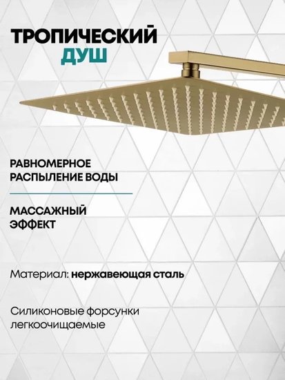 ✅ Уникальная душевая система с тропическим душем и термостатом станет настоящим украшением вашей ванной комнаты. Этот комплект включает в себя все необходимое для комфортного использования: корпус душевой системы, термостатический картридж от Vernet (Франция), ручную лейку из латуни, верхний тропический душ с регулируемым углом наклона и несколькими режимами подачи воды, а также крепление и монтажный комплект.✅ Если вы ищете смеситель для ванны с душем или душ со смесителем, эта модель идеально подойдет для вас. Она создаст атмосферу уюта и расслабления, позволяя наслаждаться приятными водными процедурами. ⚠️ Высококачественные смесители «Grocenberg» изготавливаются из санитарной латуни с высоким содержанием меди, что гарантирует долговечность и надежность. Перед отправкой вся продукция проходит строгий контроль качества, что обеспечивает долгий срок службы без протечек.✅ Эргономичный дизайн и плавный ход рычага делают использование душевой системы максимально комфортным. Ваша ванная комната станет местом, где можно расслабиться и насладиться каждым моментом.✅ В комплект входят: смеситель с термостатическим картриджем, ручная лейка (12х12 см, 3 режима), держатель для лейки, шланг (1,5 м), верхний тропический душ (30х30 см), прокладки, эксцентрики, отражатель (20х15 см) и кронштейн для душа (39 см). ✅ Все товары бренда «Grocenberg» упакованы в прочные коробки с защитой из поролона, что гарантирует их идеальное состояние при доставке. Превратите вашу ванную в стильное и функциональное пространство с этой душевой системой!✅ Уникальная душевая система с тропическим душем и термостатом станет настоящим украшением вашей ванной комнаты. Этот комплект включает в себя все необходимое для комфортного использования: корпус душевой системы, термостатический картридж от Vernet (Франция), ручную лейку из латуни, верхний тропический душ с регулируемым углом наклона и несколькими режимами подачи воды, а также крепление и монтажный комплект.✅ Если вы ищете смеситель для ванны с душем или душ со смесителем, эта модель идеально подойдет для вас. Она создаст атмосферу уюта и расслабления, позволяя наслаждаться приятными водными процедурами. ⚠️ Высококачественные смесители «Grocenberg» изготавливаются из санитарной латуни с высоким содержанием меди, что гарантирует долговечность и надежность. Перед отправкой вся продукция проходит строгий контроль качества, что обеспечивает долгий срок службы без протечек.✅ Эргономичный дизайн и плавный ход рычага делают использование душевой системы максимально комфортным. Ваша ванная комната станет местом, где можно расслабиться и насладиться каждым моментом.✅ В комплект входят: смеситель с термостатическим картриджем, ручная лейка (12х12 см, 3 режима), держатель для лейки, шланг (1,5 м), верхний тропический душ (30х30 см), прокладки, эксцентрики, отражатель (20х15 см) и кронштейн для душа (39 см). ✅ Все товары бренда «Grocenberg» упакованы в прочные коробки с защитой из поролона, что гарантирует их идеальное состояние при доставке. Превратите вашу ванную в стильное и функциональное пространство с этой душевой системой!