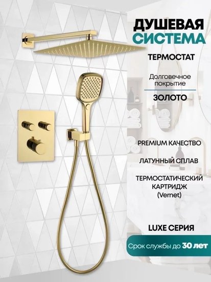 ✅ Душевая система с тропическим душем и термостатом — это идеальное решение для создания уюта и комфорта в вашей ванной комнате. Этот комплект включает в себя все необходимое для установки: корпус душевой системы, термостатический картридж от Vernet (Франция), ручную лейку из латуни, верхний тропический душ с регулируемым углом наклона и несколькими режимами подачи воды, а также крепление и монтажные элементы.✅ Если вы ищете смеситель для ванны с душем или душ со смесителем, эта модель станет отличным выбором. Она позволит вам наслаждаться расслабляющими процедурами и создаст атмосферу уюта в вашем доме. Душевая система Grocenberg — это не только функциональность, но и стильный дизайн, который прекрасно впишется в любой интерьер.⚠️ Смесители Grocenberg изготовлены из санитарной латуни с высоким содержанием меди (70%), что обеспечивает их долговечность и надежность. Перед отправкой каждый продукт проходит контрольное тестирование, что гарантирует отсутствие протечек и долгий срок службы — до 30 лет комфортной эксплуатации.✅ Эргономичный дизайн и плавный ход рычага делают использование этой душевой системы максимально удобным. В комплект входят: смеситель с термостатическим картриджем, ручная лейка шириной 12х12 см с тремя режимами, держатель для лейки, шланг длиной 1,5 м, верхний тропический душ размером 30х30 см, прокладки, эксцентрики, отражатель 20х15 см и кронштейн для душа.✅ Вес системы составляет 6,7 кг в упаковке и 6 кг без неё, что подтверждает её надежность и качество. Прямые поставки от завода-производителя Grocenberg гарантируют, что вы получите идеальный смеситель, упакованный в прочные коробки с защитой из поролона.✅ Душевая система с тропическим душем и термостатом — это идеальное решение для создания уюта и комфорта в вашей ванной комнате. Этот комплект включает в себя все необходимое для установки: корпус душевой системы, термостатический картридж от Vernet (Франция), ручную лейку из латуни, верхний тропический душ с регулируемым углом наклона и несколькими режимами подачи воды, а также крепление и монтажные элементы.✅ Если вы ищете смеситель для ванны с душем или душ со смесителем, эта модель станет отличным выбором. Она позволит вам наслаждаться расслабляющими процедурами и создаст атмосферу уюта в вашем доме. Душевая система Grocenberg — это не только функциональность, но и стильный дизайн, который прекрасно впишется в любой интерьер.⚠️ Смесители Grocenberg изготовлены из санитарной латуни с высоким содержанием меди (70%), что обеспечивает их долговечность и надежность. Перед отправкой каждый продукт проходит контрольное тестирование, что гарантирует отсутствие протечек и долгий срок службы — до 30 лет комфортной эксплуатации.✅ Эргономичный дизайн и плавный ход рычага делают использование этой душевой системы максимально удобным. В комплект входят: смеситель с термостатическим картриджем, ручная лейка шириной 12х12 см с тремя режимами, держатель для лейки, шланг длиной 1,5 м, верхний тропический душ размером 30х30 см, прокладки, эксцентрики, отражатель 20х15 см и кронштейн для душа.✅ Вес системы составляет 6,7 кг в упаковке и 6 кг без неё, что подтверждает её надежность и качество. Прямые поставки от завода-производителя Grocenberg гарантируют, что вы получите идеальный смеситель, упакованный в прочные коробки с защитой из поролона.