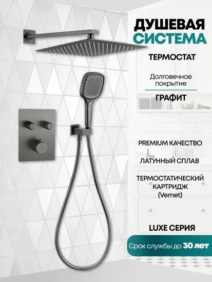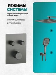 • Комплектация верхний душ, ручной душ (лейка), держатель лейки, шланг