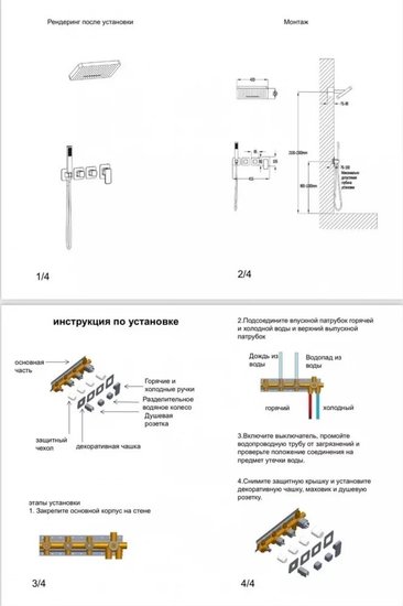 • Комплектация верхний душ, ручной душ (лейка), держатель лейки, шланг