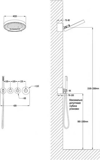 • Комплектация верхний душ, ручной душ (лейка), держатель лейки, шланг