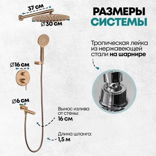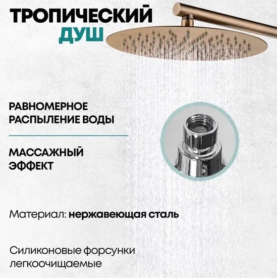 • Комплектация верхний душ, ручной душ (лейка), шланг