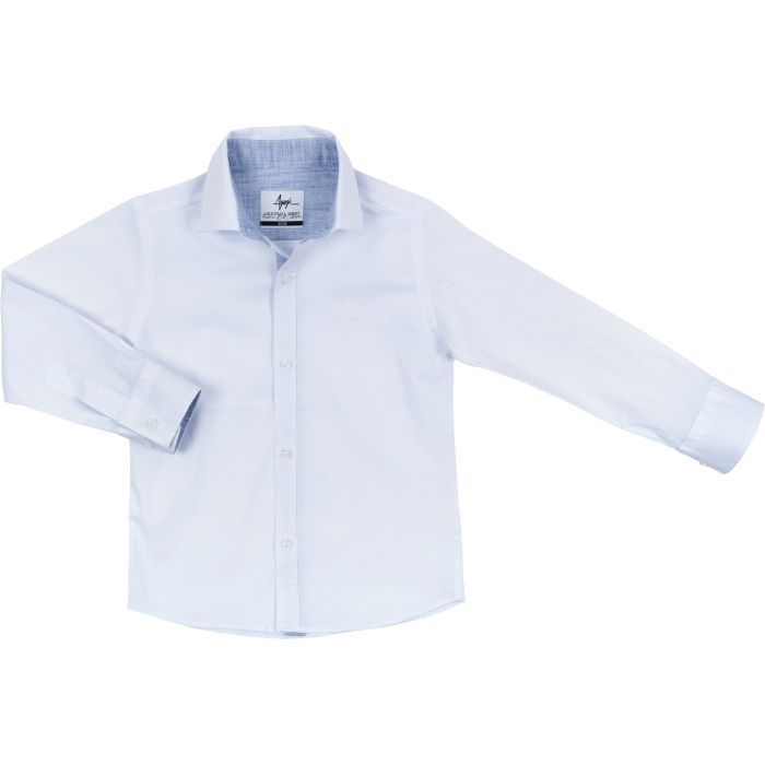 Елегантна, класична сорочка білого кольору з тонкої стрейчевої бавовняної тканини для хлопчика.