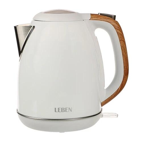 Электрический чайник LEBEN объемом 1,7 л имеет стильный и лаконичный дизайн в белом цвете с ручкой под дерево, который впишется в интерьер любой кухни. Обладает набором всех необходимых функций: поворот корпуса на подставке на 360 градусов, световая индикация работы, автоотключение, высокая мощность 2200 Вт для максимально быстрого кипячения.