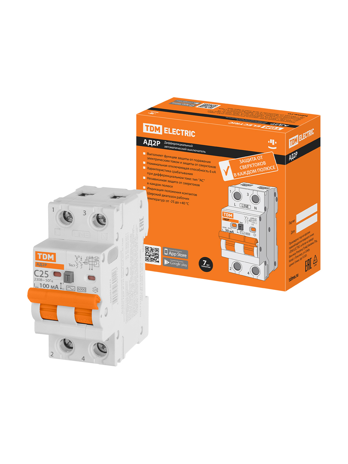 Выключатель автоматический дифференциальный АД2P 2Р SQ0204-0612