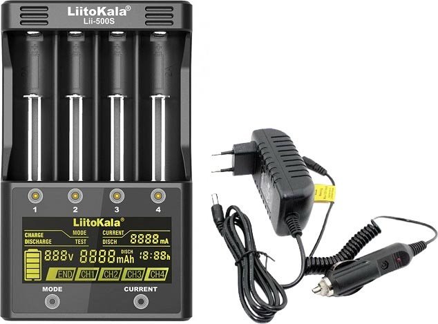 - Типоразмер AA, AAA, 18650, 10440, 14500, 16340, 17335, 17500, 17670, 18490, 22650, 26500, 26650, A, SC