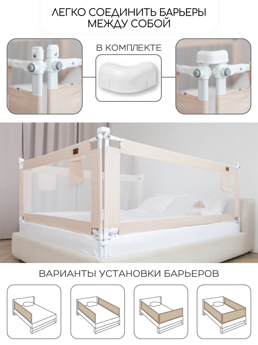 Ограждение для кровати Amarobaby Linear / AB-LIN-BSR-BE-200 (бежевый)