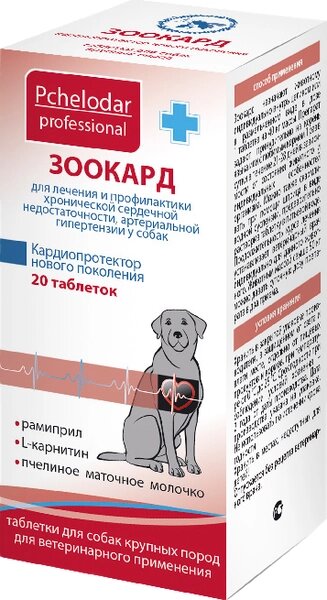 Таблетки для лечения сердечно-сосудистой системы у животных Pchelodar Зоокард для собак крупных пород