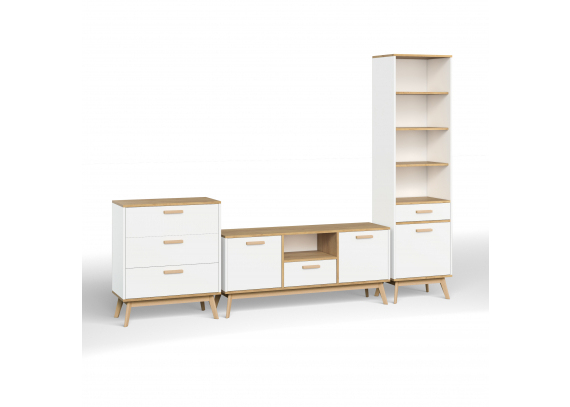 Тумба под ТВ "Алатея" — стильное и практичное решение для современных интерьеров. Её гармоничное сочетание Дуб крафт золотой и Белый придаёт пространству элегантность, а конструкция на высоких ножках обеспечивает удобство уборки, включая использование робота-пылесоса.