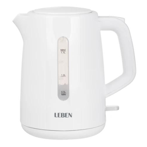 Электрический чайник LEBEN 1,7 л в пластиковом корпусе белого цвета с полным оборотом вращения 360 градусов – это универсальное решение для любой кухни. Имеет мощность 2200 Вт, быстро кипятит воду и автоматически отключается при закипании. Внутренняя поверхность из высококачественной нержавеющей стали не подвержена коррозии и легко очищается от накипи.