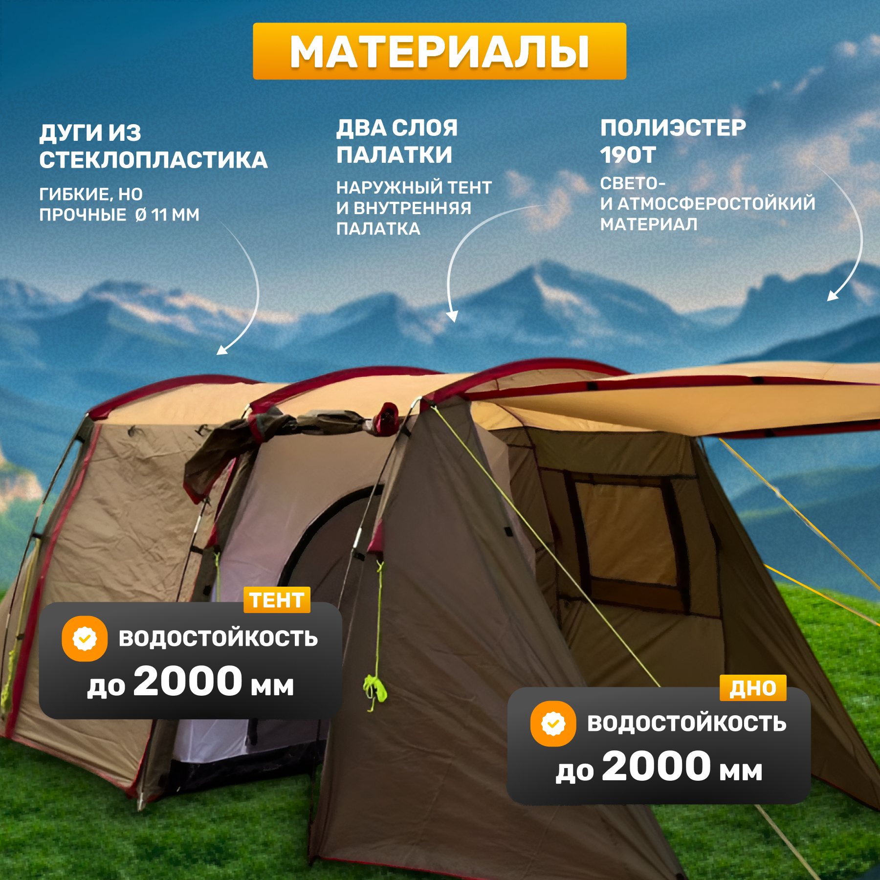 • Водостойкость тента 2000 мм