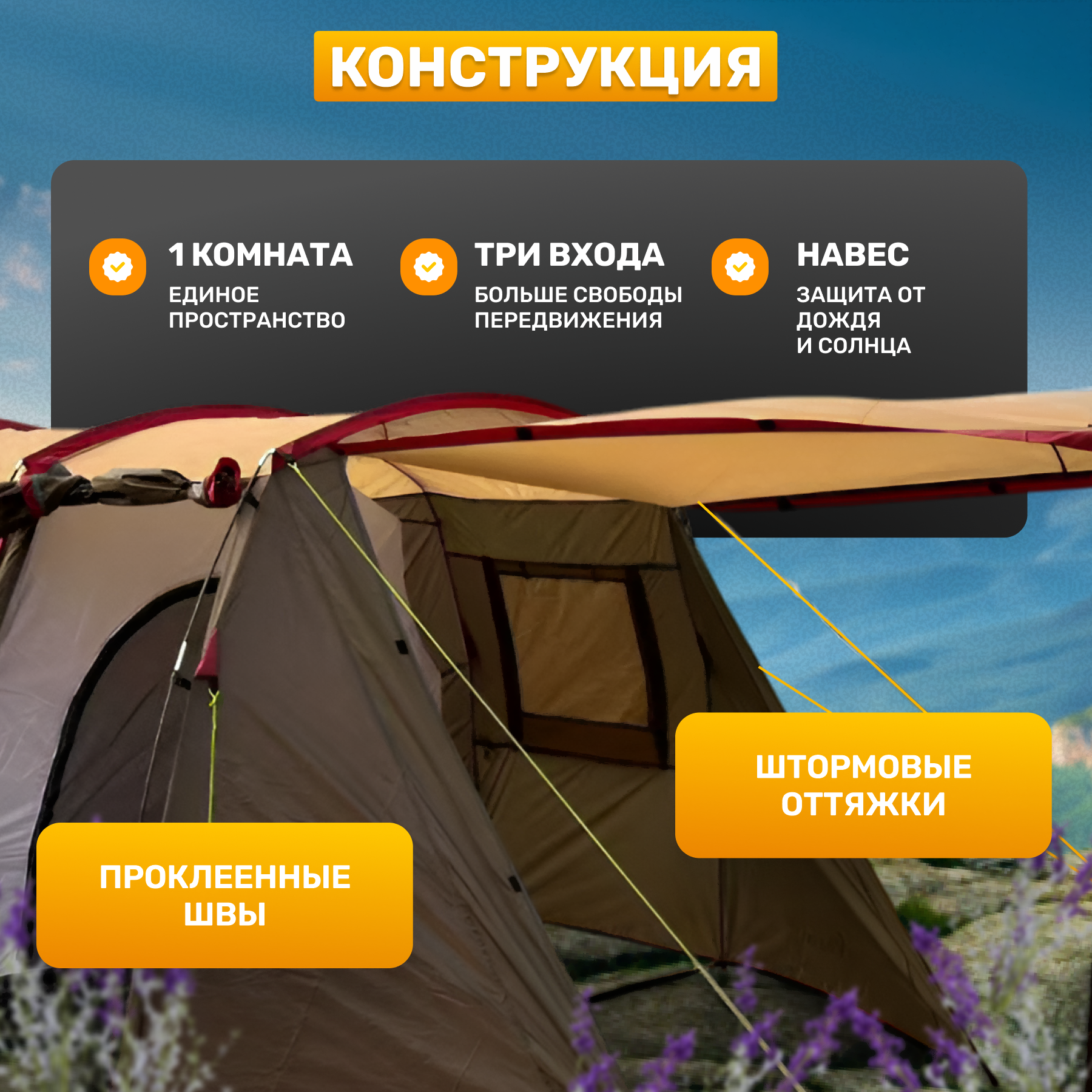 • Форма палатки полубочка
