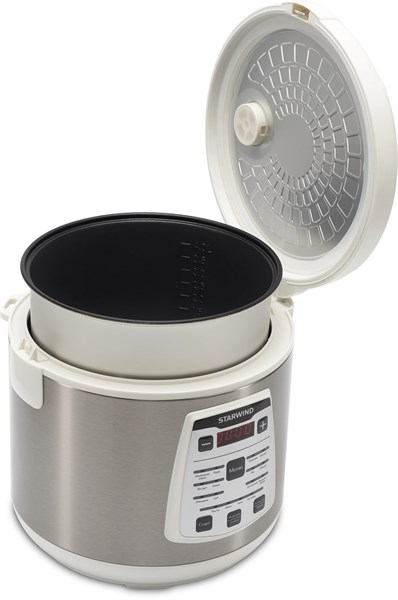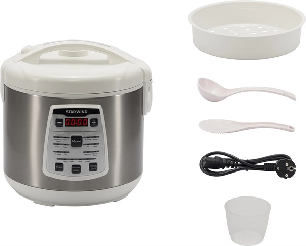 • Комплект поставки подставка для приготовления на пару, мерный стакан, черпак, плоская ложка