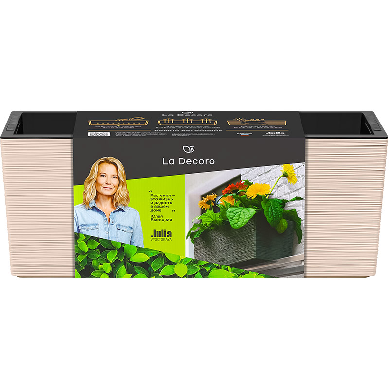 Балконное кашпо из премиальной коллекции La Decoro - это не только красивое, но и функциональное кашпо, которое станет cтильным дополнением дома и сада. Преимущества модели:▫️ Фактурная лаконичная поверхность с природными мотивами;▫️ 2 варианта дренажной вставки: цельная и раздельная, состоящая из 3-х отсеков - удобно при выращивании разных в уходе растений;▫️ Наличие ручек в дренажной вставке для удобного извлечения из корпуса;▫️ Клапан для слива воды — удобно для контроля влажности почвы;▫️ 8 трендовых оттенков на любой вкус.Кашпо оформлено в стильную упаковку с амбассадором бренда La Decoro Юлией Высоцкой.