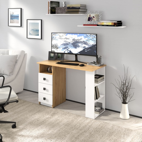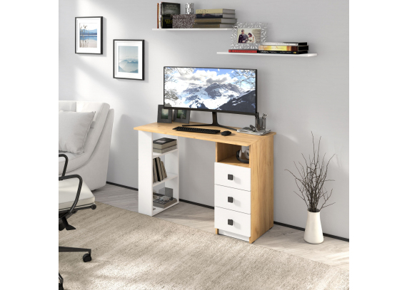 Стол компьютерный Абри Белый/Дуб крафт золотой