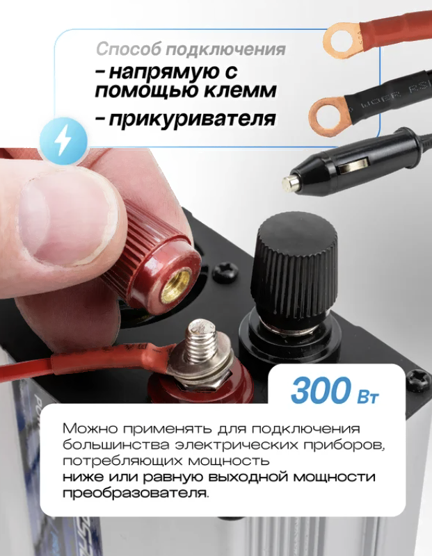 • Питание автомобильный аккумулятор, автоприкуриватель