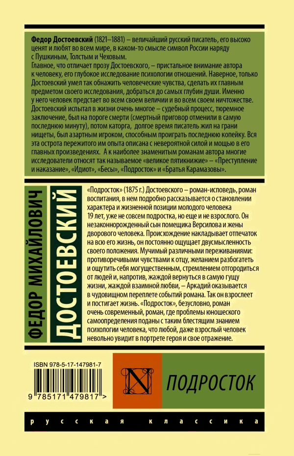 Книга АСТ Подросток (Достоевский Ф.М.)