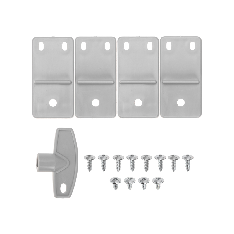 В комплектацию входят: оцинкованная монтажная панель (не подвержена коррозии), ключ, кронштейны и набор винтов для крепления.