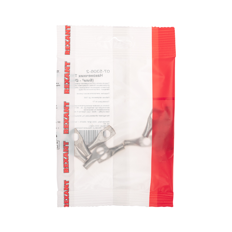 Наконечник ТМЛ-Р 6–6 (6мм² - Ø6мм) REXANT предназначен для оконцевания проводов и кабелей с медными и алюминиевыми жилами посредством опрессовки для последующего болтового соединения проводника с оборудованием или шиной.