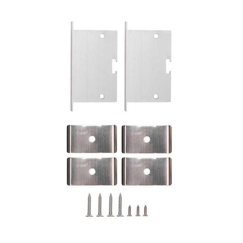 Комплект включает в себя алюминиевый профиль, рассеиватель, две заглушки (с отверстием и без отверстия) и 4 монтажные клипсы.
