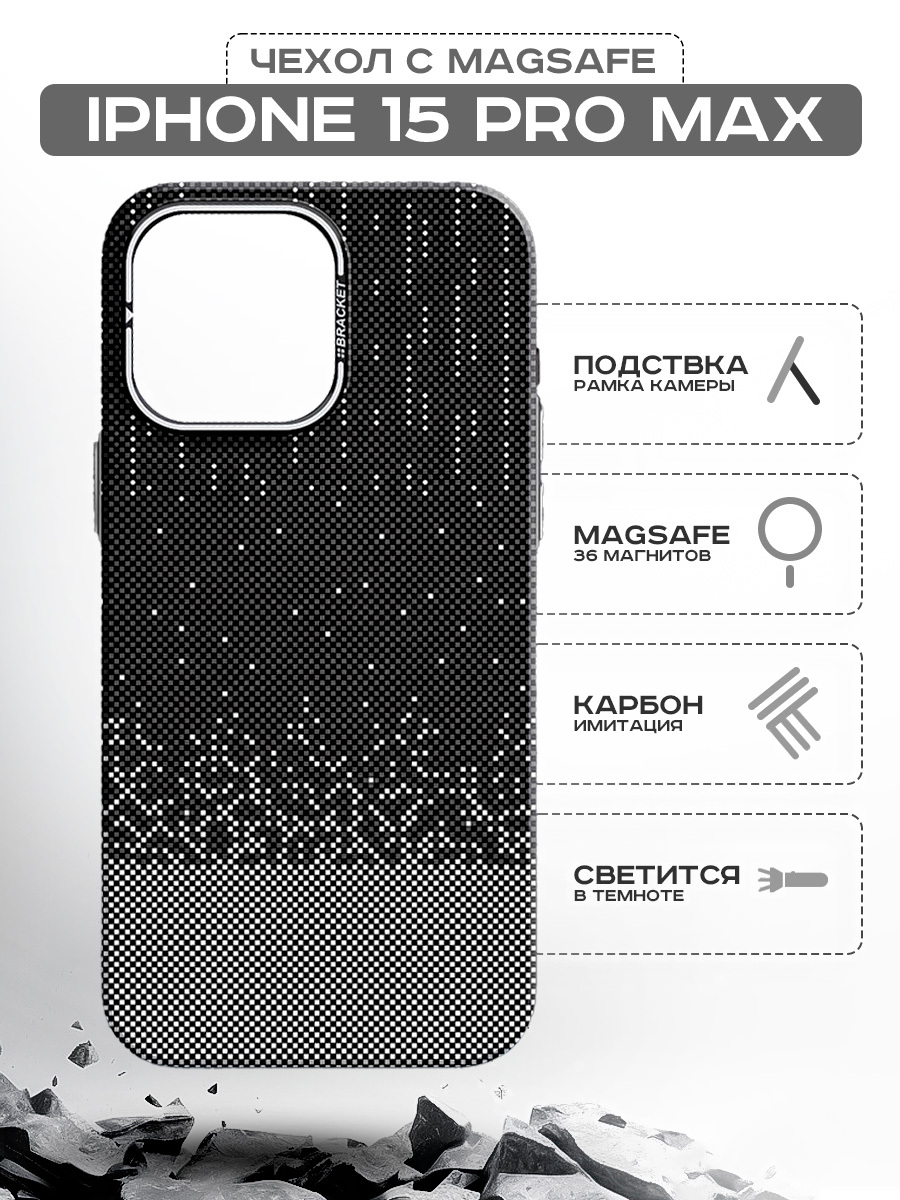 Чехол-накладка Luxo С MagSafe Карбоновый дождь LF74 для Apple iPhone 15 Pro Max (черный)