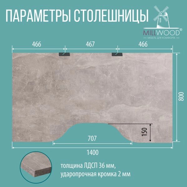 Компьютерный стол Millwood Каир 2 с вырезом 140x80x74.2