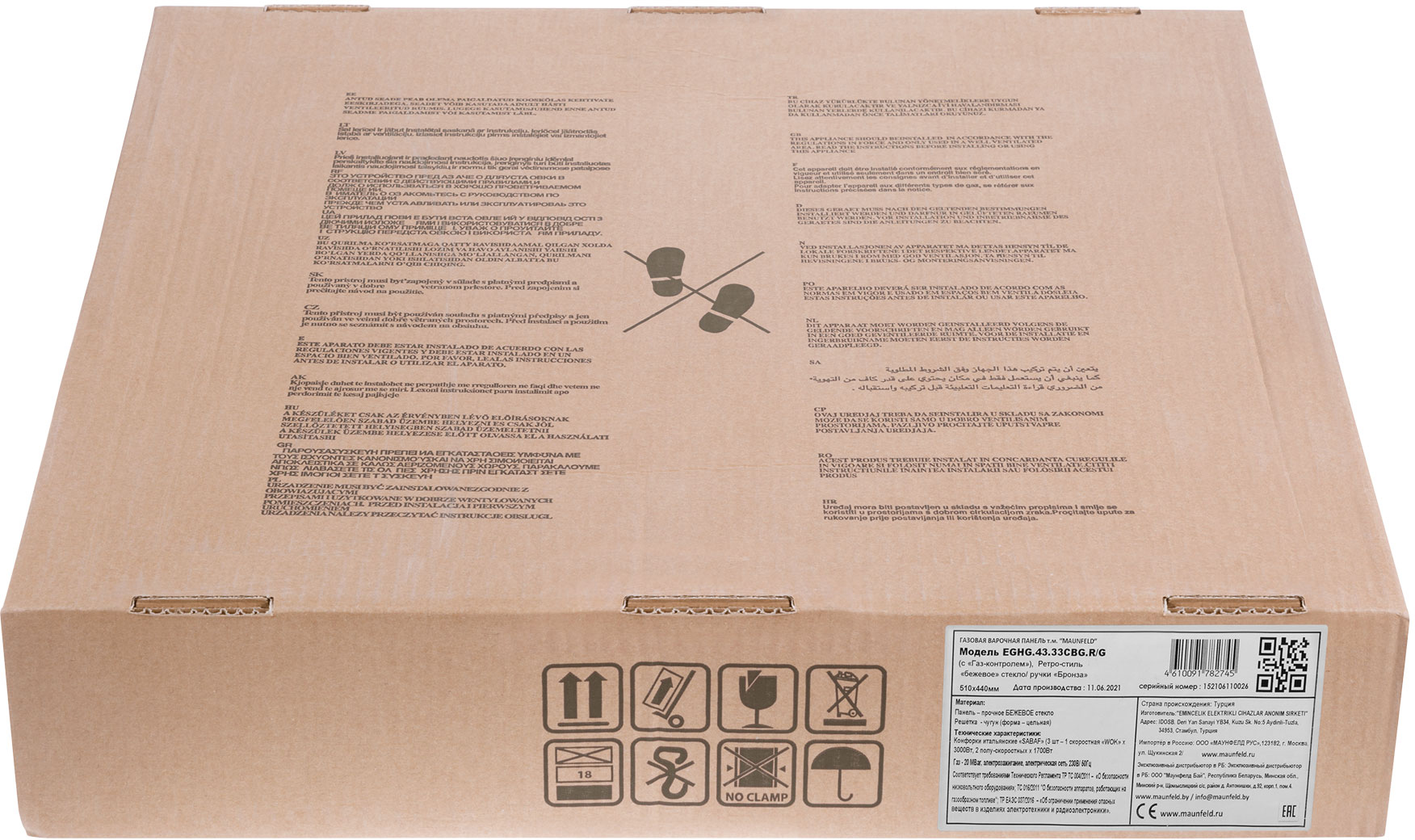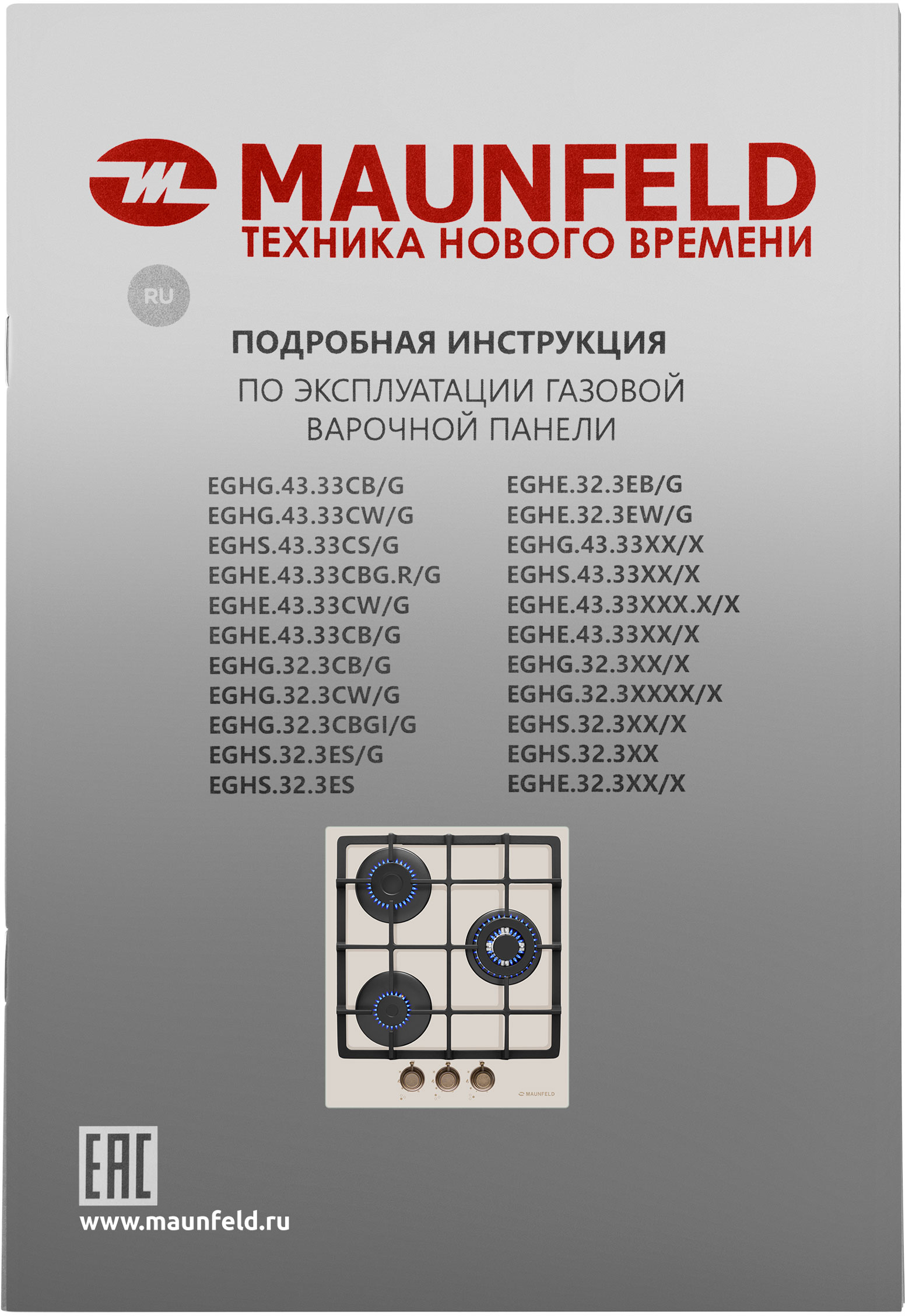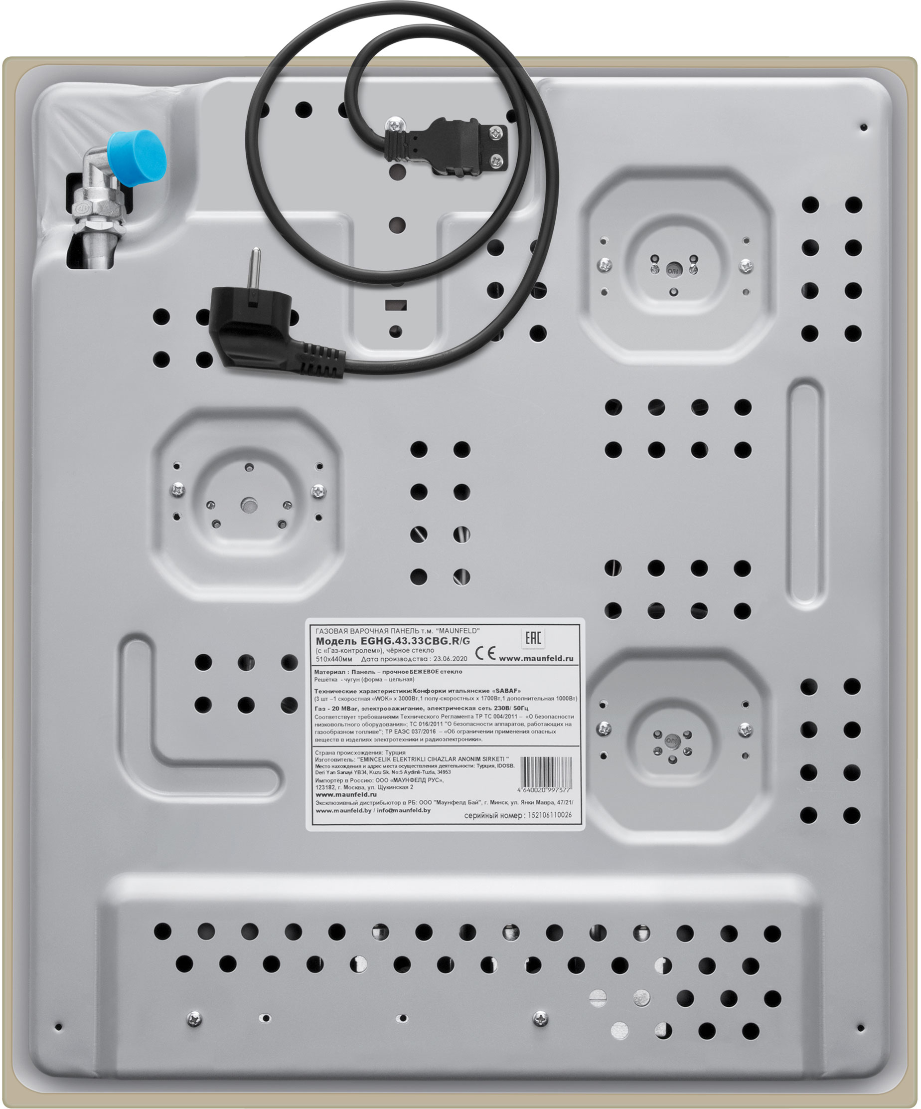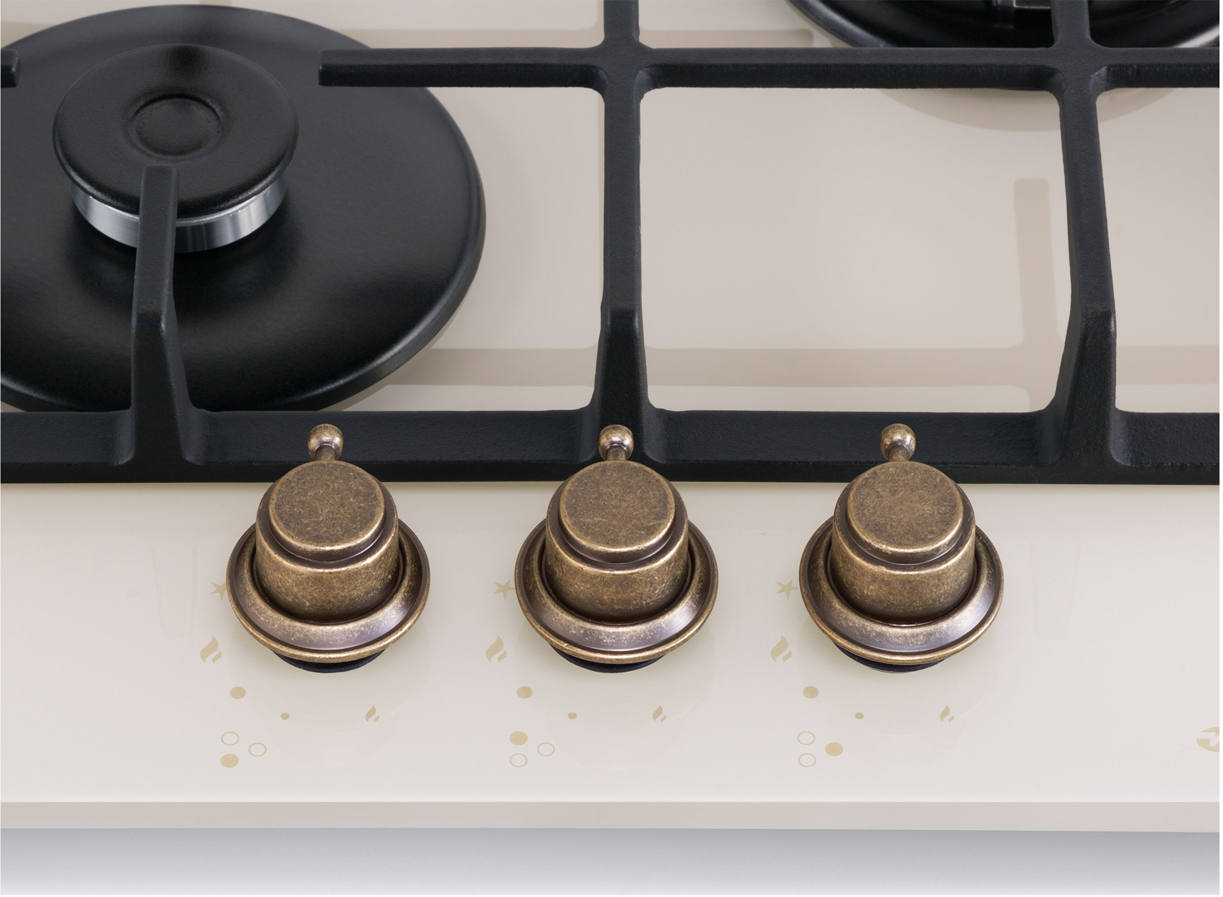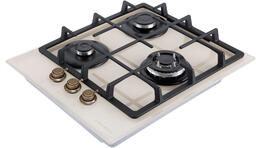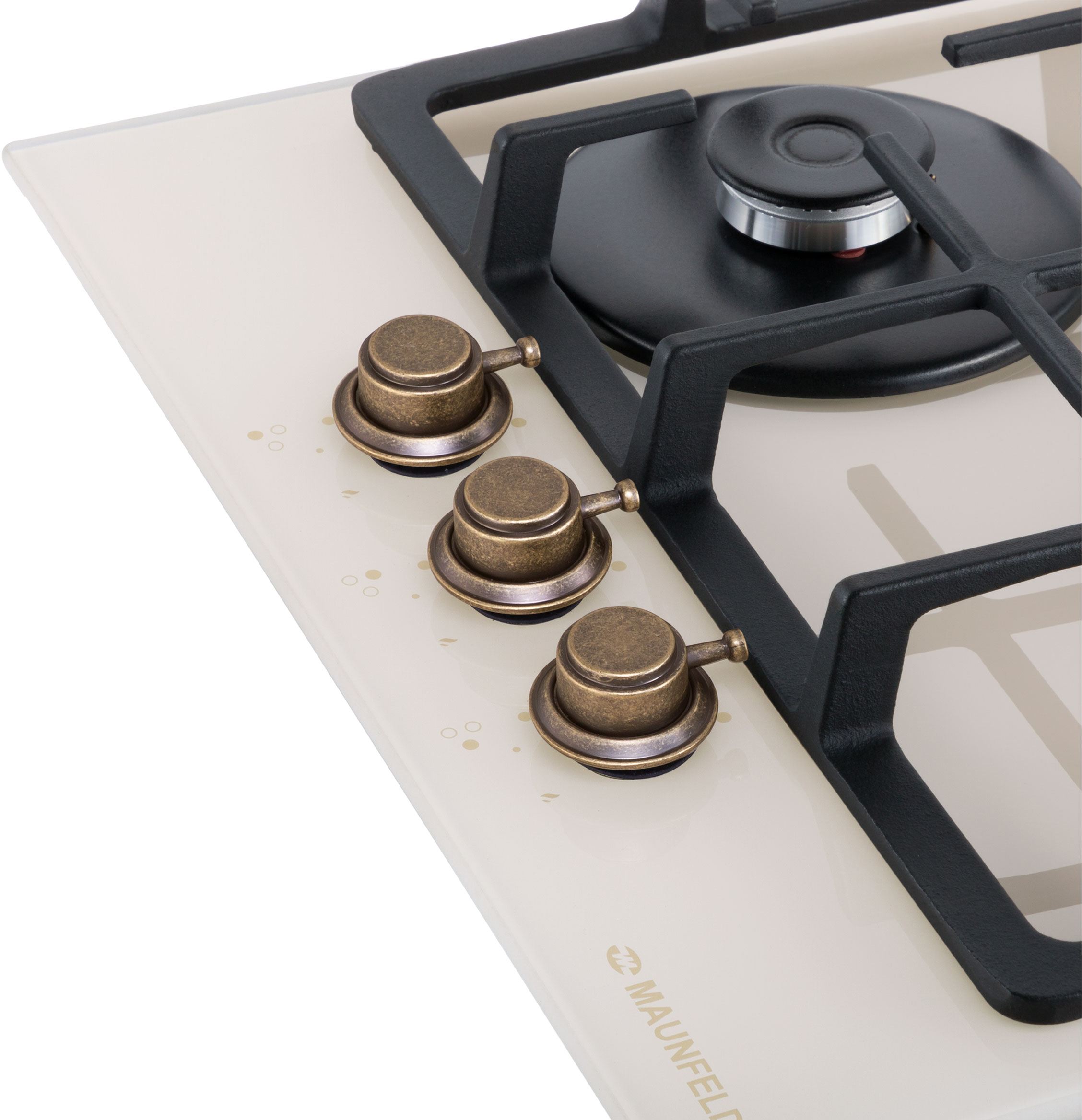 Встраиваемые газовые панели MAUNFELD/ Варочная панель, Тип: газовая 45см, закаленное стекло, Тип установки: независимая Управление: фронтальное, переключатели поворотные, 3 конфорки, мощность конфорок 1000, 1700, 3000, электроподжиг, газ-контроль, WOK, цвет бежевый