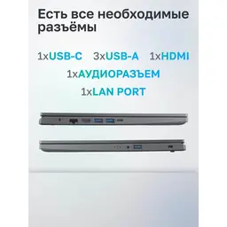 Ноутбук Acer Aspire 5 получил 15.6-дюймовую IPS-панель с разрешением Full HD и частотой 60 Гц, что обеспечивает четкое и детализированное изображение при просмотре видео и создании презентаций. Пиковой яркости 250 кд/м2 будет достаточно для комфортной работы внутри помещения, а функция защиты зрения уменьшает нагрузку на глаза при редактировании документов Word или Excel. Углы обзора составляют 170 градусов, поэтому цветопередача не будет искажаться при взгляде на экран под разными ракурсами. Матовая поверхность защищает от бликов в дневное время. Для доступа к интернету можно использовать гигабитную сетевую карту с Ethernet-портом для кабельной сети или беспроводной модуль Wi-Fi шестого поколения (будет полезен в офисе или общественных местах).