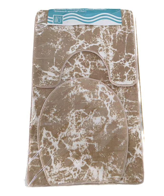 Комплект ковриков для ванной, 3 шт.50x80 см ILLU Бежевый мрамор (полиэстер) xb24102157